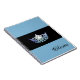 Notebook shown with a photo print of a gleaming Baby Blue coloured crown print on a black background and a personalised name. Notebook shown in Pool Blue. Customise this item and change the name to yours or take off, or purchase as shown.