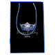 This Blue pageant crown gift bag shown in Black & Blue and in the Medium size. One Blue crown is perched in centre on each side along with personalised text. Shown here is "Happy Birthday" and "Kira" waiting for your personalisation. Bag has handles. Add some tissue paper or ours for that perfect presentation!