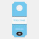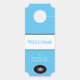 Greet your guests with this door hanger that takes the place of a welcome mat inside the home, apartment or hotel room. Shown here in a pretty shade of sky blue with coordinating white and black colourings. "Welcome" text on front and back with a small oval and silver crown inside. Personalised line for your pageant name, your title or other special moto or statement. Customise this item or buy as shown.
