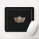 Mouse pad shown with a photo print of a gleaming crown in a gold tone colour. Thin border.