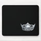 Mouse pad shown with a photo print of a round gleaming crown in a silver-tone colour.