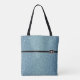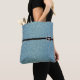 This tote bag is shown with a fun faux Aqua Blue glitter print and a black stripe between top and bottom with a small Silver crown as if it were a buckle on band.