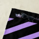This beach towel is shown in a Black background with bold Lilac colour stripes and with a print of a gleaming Lilac pageant crown. Has sample text for you to personalise with your own name or title.