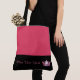 This cute stylish large tote bag is shown in a Geranium Pink and Black colour block style with a Hot Pink pageant crown and custom text.