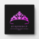 This awards plaque is for any one who wants a crown on it. Shown in a 5x7" size this plaque is a real stand-up award for your pageant winners, contestants or even your mum. Created in a sleek Black background with Pink text specifying the award of your choice which you can customise. Buy as is or change the pageant name of course to your own and personalise the award category. Plaque has stand attached and an image of a Fuchsia Pink Tiara Crown. Scratch resistant coating makes this item a real winner. For any contestant, runner-up or Title holders, or any one.
