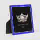 An award for any one who wishes to have a crown on it. Shown in a 5x7" size this plaque is a real stand-up award for your pageant winners, contestants or even best mum. Created in a sleek Black background with light Silver-Grey text specifying the award of your choice which you can customise and a wide royal blue border and a thin grey border. Buy as is or change the pageant name of course to your own as well as the award category. Plaque has stand attached and an image of a Gleaming Silver Crown. Scratch resistant coating makes this item a real winner.