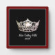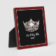 An award for any one who wishes to have a crown on it. Shown in a 5x7" size this plaque is a real stand-up award for your pageant winners, contestants or even best mum. Created in a sleek Black background with light Silver-Grey text specifying the award of your choice which you can customise and a wide burgundy border and a thin grey border. Buy as is or change the pageant name of course to your own as well as the award category. Plaque has stand attached and an image of a Gleaming Silver Crown. Scratch resistant coating makes this item a real winner.