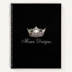 This spiral recipe notebook is shown in sleek Black with a print of a gleaming Silver crown on the cover and has graph paper inside. Beneath the crown is the sample word of "home Designs" in fancy script waiting for you to personalise to your theme. Back cover in solid colour of Black with a small silver crown at bottom.