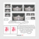 This sticker sheet has a silver crown image of different sizes, one larger sized crown has custom text attached to it for you to customise [sample shown is a title], year/ date stickers, rose image stickers and an inspirational message.