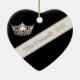 In Black, White and Golden Camel colors, this double-sided heart shape ornament shows a white banner along with personalized text of your name or title and a photo print of a gleaming silver crown.