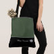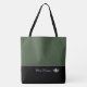 This cute stylish large tote bag is shown in Chive Green and black bottom colour block style with a pageant crown and custom text. Has Accent stripe.