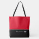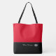 This cute stylish large tote bag is shown in flaming Scarlet Red and black bottom colour block style with a pageant crown and custom text. Has Accent stripe.