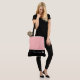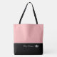 This cute stylish large tote bag is shown in a warm Coral Pink and black bottom colour block style with a pageant crown and custom text. Has Accent stripe.