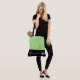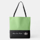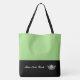 This cute stylish large tote bag is shown in a Apple Green and Black colour block style with a pageant crown and custom text.
