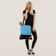 This cute stylish large tote bag is shown in a Blue and Black colour block style with a pageant crown and custom text.