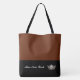 This cute stylish large tote bag is shown in a Cinnamon and Black colour block style with a pageant crown and custom text.