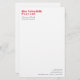 This letterhead or Personal stationery is shown in classic crisp White paper and Bright Red text at top left edge which is clearly captioned in bold enough print to get their attention along with your title & information. Lower left corner holds web site, phone and addresses. Add your logo if you prefer and customise further.