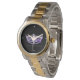This Pageant infused two-toned women's wrist watch features a Silver & Gold case, a Black face with Dove Grey time markings and a Purple & Silver Miss America type of crown in centre. Customise this watch with your pageant name and date.