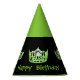 Party hat is shown in Green and Black with a pretty gleaming crown along with text saying Happy Birthday.