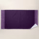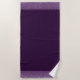 This beach towel is shown in a solid deep Purple towel with ends in Purple faux glitter colour and a coordinating solid stripe.