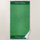 This beach towel is shown in a fun faux Glitter print in Grass Green. Centre has subtle "faded" look. Ends in contrasting colour with customisable text for your personal title or name.