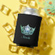 Can cooler shown in a solid colour of black with a glamourous Green crown photo print on front and back. Personalised name on front.  Customise this item or buy as is. Suggestion: add pageant name and date on bottom of can cooler if you prefer.