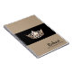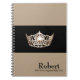 Notebook shown with a photo print of a sharp looking Lt. Gold coloured crown on a black background and a custom name. Notebook shown in Taupe. Customise this item and change the name to yours or take off the name and buy as is.
