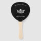 This paddle fan is shown in Black with a print of a Silver coloured Miss America style crown and sample text for you to customise to your liking. Choose from different shapes, etc.
