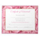 Created from an autograph pad, this stack of certificates of achievement would be a great enhancement for your organisation or pageant to hand out to multiple entrants or qualifiers. A lovely way to show support and congrats to all those for entering. Shown with borders of Pink Roses with a Pink colour of "certificate of achievement" at top beneath roses and all the corresponding text you would need on white with grey text body. Has an inner thin border of golden. Must Customise the centre text area of this item.