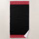 This beach towel is shown in a Black towel with ends in Red faux glitter colour and a coordinating solid stripe.