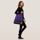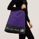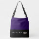 This cute stylish medium size cross body bag is shown in a Blackberry [ deep purple] and Black colour block style with a pageant crown and custom text.