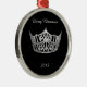 Christmas ornament shown in a round shape with a Silver and black colour crown and background. Shown with red ribbon and silver rimmed. Merry Christmas text in White. Customise this item with your personal pageant name, date or other.