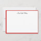 Custom Note Card shown in White with a slim Red border. Customise this card and change the name to yours or even change the colours. Look for matching envelopes.