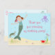 An adorable and modest mermaid thank you postcard that coordinates with the miss mermaid party invitations. Perfect for your little girl's party. Original vector artwork by Night Owl's Menagerie, 2014.
