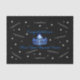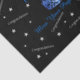 This tissue paper is shown with a celebratory print of stars, smaller sized congratulations scattered all over in Soft Grey on a black background with a larger Turquoise Blue congrautlations and Blue gleaming crown print. Must customise this item with your title or name.