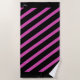 Hot Pink stripes mingle with sexy Black on this beach towel. Both ends have space for customisation and feature a fancy swirl Silver-colour crown print on each end of the towel. Customise or buy as designed.