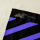 Purple stripes mingle with sexy Black on this beach towel. Both ends have space for customisation and feature a fancy swirl pale Golden-colour crown print on each end of the towel. Customise or buy as designed.