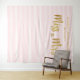A boho chic, simple, elegant and classy bridal shower backdrop with a "Miss to Mrs" title, featuring a pink watercolor background with hand-drawn stripes, modern calligraphy script with a gold overlay (this is a digital effect, not real foil) and typography in a gold hue. A chic, timeless design that combines traditional, formal wedding design with modern script calligraphy and a trendy layout.