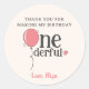 Miss Onederful Birthday Pink Balloon Thank You Classic Round Sticker