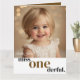 Celebrate her very first birthday in style with this heart-warming “Miss ONEderful” photo card, featuring a soft golden background, elegant typography, and space to add your own adorable photo. Perfect for proud grandparents to send their warmest wishes to a little girl who has completely stolen their hearts.