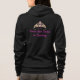 Shown in Black, this zip front hoodie has a small printed on emblem of a rodeo crown with fuchsia pink coloured faux stones in it just above the left pocket area [if it had a pocket] along with personalised monograms and date. These could be the monograms of your horsemanship Association or something else. Sample monograms and date are shown. The back of this hoody, has same crown and faux-stones only larger along with the full-on script of "Future Miss Rodeo in Training". Inside the crown are sample monograms. Customise the colours of stones, crown and text. Select hoody colour and size.