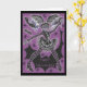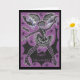 Happy Halloween Scream Queen! Miss Teen Halloween models her stylish fancy dress costume against a purple background with stars and bats. Greetings card with purple, black, white and silver customisable design for you to personalise with your own text images and ideas. An original ink and coloured pencil drawing by jessperry