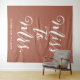 Modern miss to mrs backdrop is the perfect personalized bridal shower photo prop. Take all your bridal shower photo with this photo booth backdrop. In a boho bachelorette style. This hen weekend trip decorations tapestry is the perfect modern photobooth for the bride and the bridal shower. The text says " future mrs" and you can personalize with the bride's name. A simple miss to mrs banner is your ideal custom bridal shower backdrop in an elegant and earthy terracotta color.