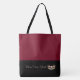 This cute stylish large tote bag is shown in an Crimson and Black colour block style with a pageant crown and custom text.