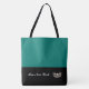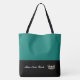 This cute stylish large tote bag is shown in a Bahama [Teal Green] and Black colour block style with a pageant crown and custom text.
