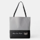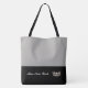 This cute stylish large tote bag is shown in a Silver-Grey and Black colour block style with a pageant crown and custom text.