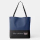 This cute stylish large tote bag is shown in Navy and black bottom colour block style with a pageant crown and custom text.