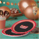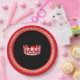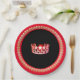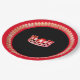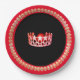 These pageant festive paper plates are great for serving up some fun (and easy clean up too) for your next pageant get together. Add your pageant theme or pageant name if desired. Shown here is a bright Red rim and a gleaming Red-Coral crown print in the centre over chic Black background. Gold coloured regal trim on the rim. Personalise or buy as designed.