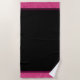 This beach towel is shown in a Black towel with ends in Pink faux glitter colour and a coordinating solid stripe.