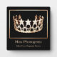 Shown in a 5x7" size this plaque is a real stand-up award for your pageant winners or contestants. Created in a sleek Black background with light Champagne-Biege text specifying the award of your choice which you can customise or buy as is changing the pageant name of course to your own. Plaque has stand attached and an image of a Miss USA style crown in Gold. Scratch resistant coating makes this item a real winner.